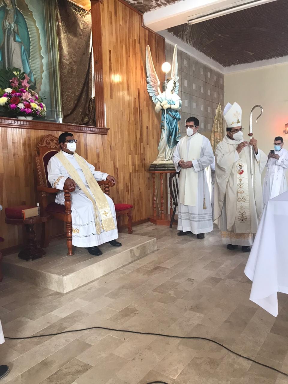 Monseñor Faustino Armendáriz Jiménez, Arzobispo de esta Iglesia Local, ha dado a conocer el nuevo nombramiento del recién ordenado Presbítero Oscar Alonso González Ibáñez, como Párroco de la Parroquia de Nuestra Señora de Guadalupe, ubicada en la comunidad de General Escobedo, El Oro, Durango. El pastor de esta parroquia, deberá cumplir su misión anunciando la Palabra de Dios y promoviendo la instrucción catequética de los niños, jóvenes y adultos. De manos del señor Arzobispo Don Faustino Armendáriz Jiménez, fue que tomó posesión el sacerdote. Además obtuvo la entrega de las llaves de la Parroquia, la pila bautismal y el confesionario. Nos unimos en la oración a Jesucristo Sacerdote y Buen Pastor, para que ilumine y le conceda siempre su luz a este servidor suyo, a fin de que esta comunidad de nuestra Iglesia local sigan creciendo y ofreciendo frutos de fe.