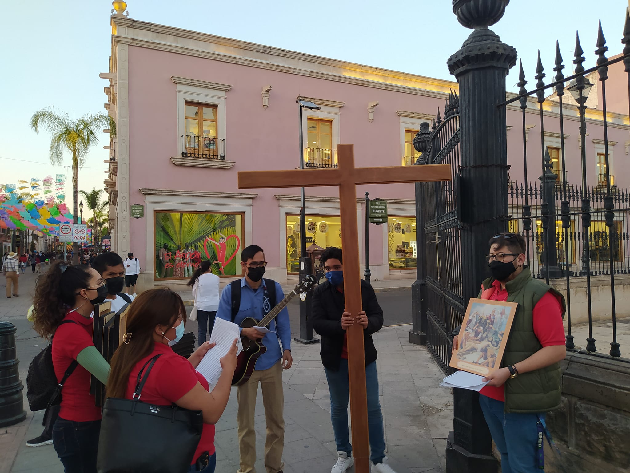 Durango, Dgo. 10 de Marzo de 2022.- El Grupo de Lux Dei, perteneciente a la Catedral de Durango, invita a todos los fieles a participar en el Rezo del Vía Crucis, todos los días viernes de Cuaresma, en punto de las 6 de la tarde, teniendo como punto de partida Constitución esquina con Coronado, para caminar y rezar las estaciones del Vía Crucis por el corredor hasta llegar a Catedral. Este acto es de gran importancia para los católicos pues es una devoción centrada en los Misterios dolorosos de Cristo, que se meditan y contemplan caminando y deteniéndose en las estaciones que representan los episodios de la Pasión. Contempla 14 estaciones y al rezarlo, se recuerda con amor y agradecimiento lo mucho que Jesús sufrió por salvarnos del pecado.